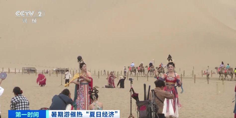 暑假到了,甘肅敦煌旅游持續(xù)升溫。鳴沙山月牙泉景區(qū)以其獨特的大漠風光,吸引各地游客前來打卡,大漠旅拍服務(wù)受到青睞。