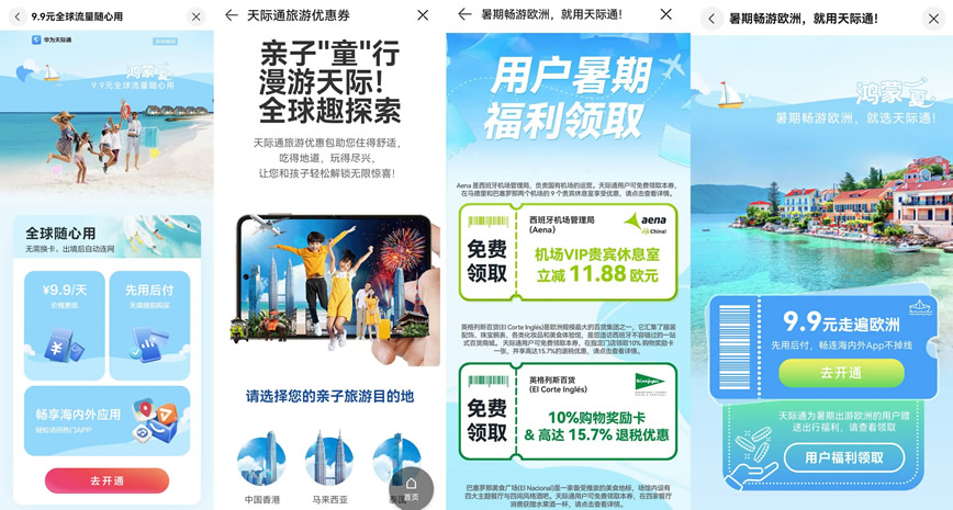 今年夏天,天際通為計劃出境游的用戶特別推出了“全球隨心用”活動,境外流量9.9元包天,每天有5GB高速流量,活動覆蓋港澳、新馬泰、日韓、歐洲、澳大利亞、美國(本土地區(qū))等50個國家地區(qū),讓境外出行更方便,更劃算。天際通還為出行亞洲、歐洲的用戶提供了多地旅游優(yōu)惠權(quán)益,涵蓋機票酒店、旅游景點、吃喝玩樂等各個方面,想必這也是很多小紅書用戶在#鴻一點更夏天#中瘋狂安利的原因之一。