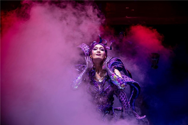 煥新改版的C秀,以全新原創(chuàng)故事劇情為核心,結(jié)合超現(xiàn)實(shí)舞美,從人物設(shè)定、舞美造景、AI科技等多個(gè)維度進(jìn)行優(yōu)化,不僅展現(xiàn)了七海首領(lǐng)們的英勇與智慧,還通過(guò)豐富的劇情和生動(dòng)的人物形象,讓觀眾深刻感受到亞特蘭蒂斯海洋神話的魅力。融合水下花游、高空特技等元素,蓄7,000立方米天然海水打造水舞臺(tái)、40米曲面LED巨幕、裸眼3D紗幕,運(yùn)用人屏互動(dòng)、仿生機(jī)械裝置及聲光電全域聯(lián)動(dòng)的技術(shù)手段,呈現(xiàn)“海中神殿”“冰川秘境”“深淵戰(zhàn)場(chǎng)”等多維場(chǎng)景,為觀眾帶來(lái)前所未有的觀演體驗(yàn)。
