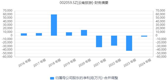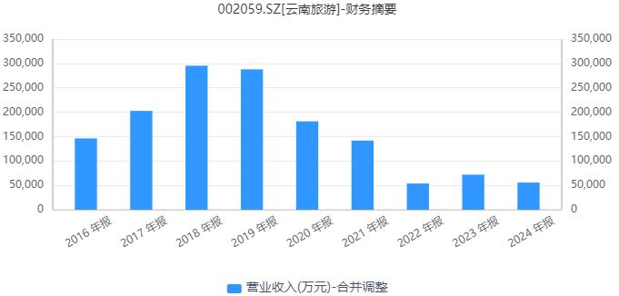 雖然擁有稀缺的旅游資源,但是在業(yè)績上,云南旅游卻沒有將優(yōu)勢轉化為利潤。營收方面,公司在2018年達到高點后就快速下滑,這幾年營收規(guī)模縮水較嚴重,2024年公司的營收5.57億元,僅相當于2018年營收的18%左右。