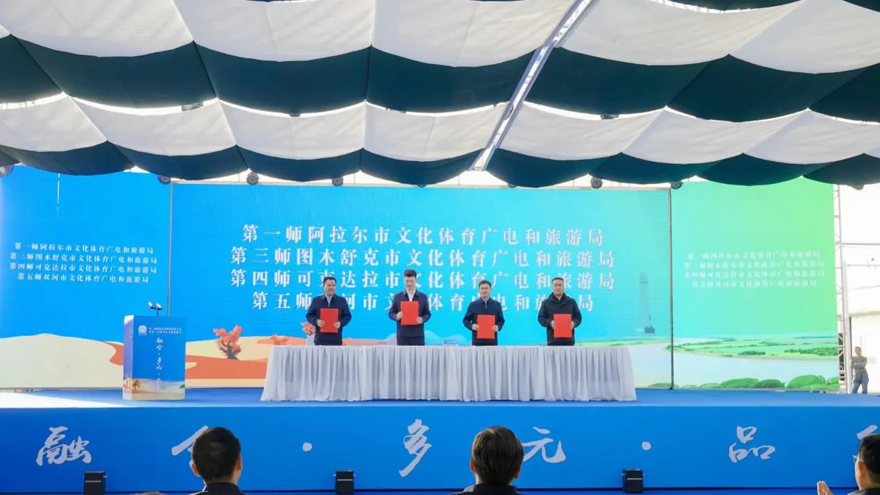 當(dāng)天,第一師阿拉爾市旅游發(fā)展大會暨第三屆塔里木文化旅游節(jié)文旅客商推介會同步舉辦。第一師阿拉爾市文化體育廣電和旅游局分別與第三師圖木舒克市、第四師可克達(dá)拉市、第五師雙河市的文化體育廣電和旅游局簽署合作共建協(xié)議,在旅游產(chǎn)業(yè)領(lǐng)域深化合作,推動區(qū)域文旅協(xié)同發(fā)展。第一師阿拉爾市文化體育廣電和旅游局、塔里木文旅集團(tuán),以及第一師四團(tuán)、七團(tuán)、十六團(tuán)依次登臺,重點(diǎn)推介了涵蓋沙漠探險、生態(tài)觀光、民俗體驗等多個領(lǐng)域的文旅項目。